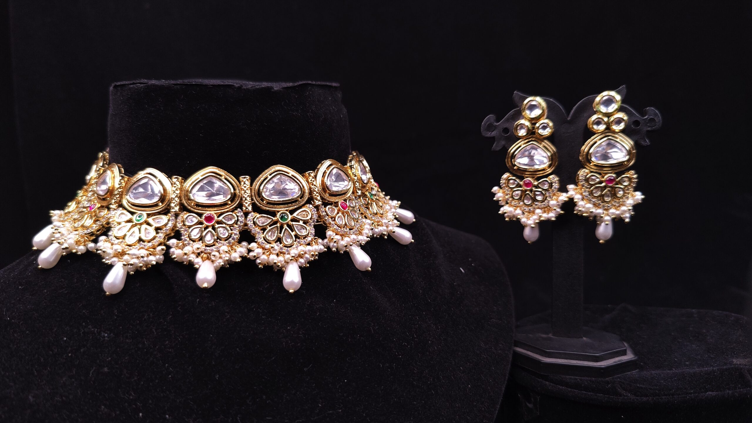 Rent beautiful pearl jewellery near me for your wedding, adding a touch of sophistication to your look on your special day.