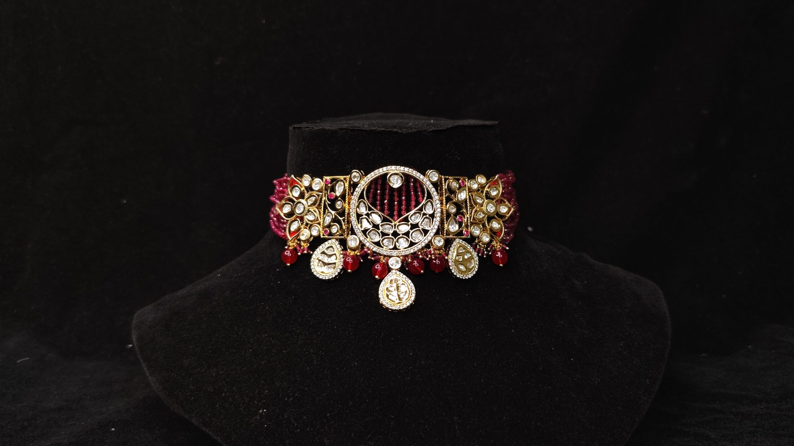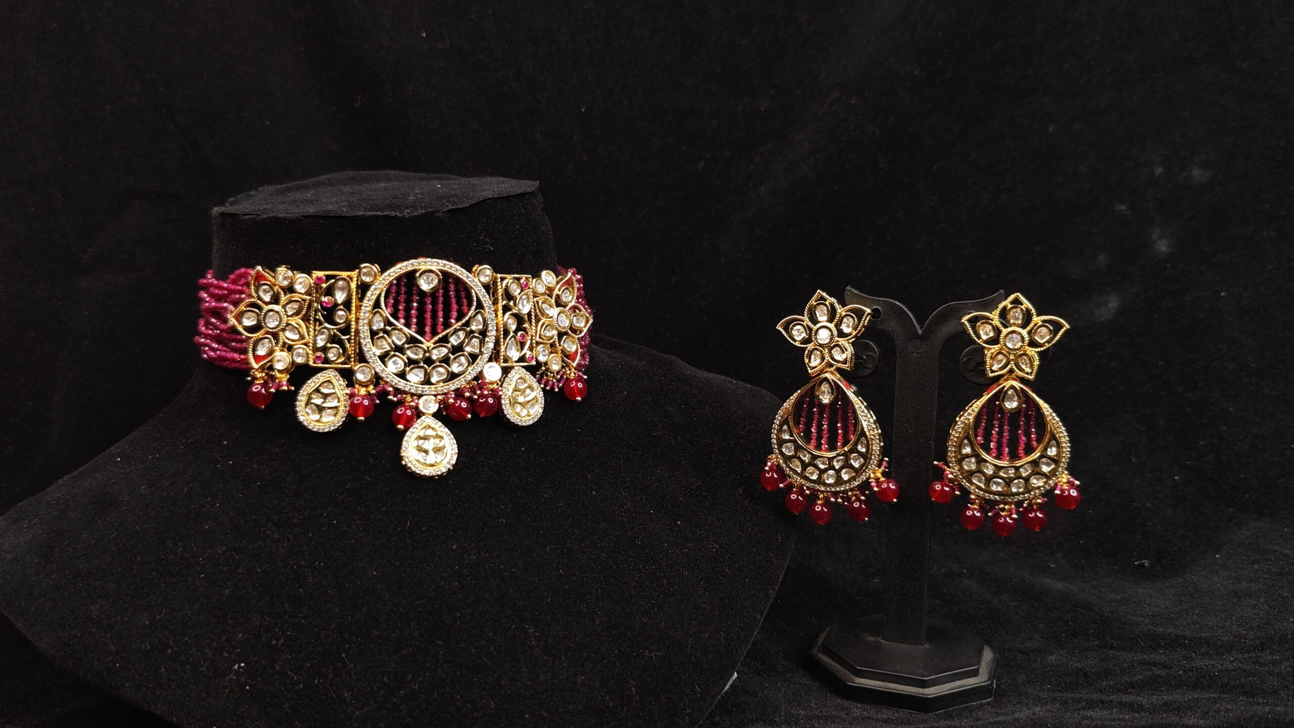 Be the first to review “Sophisticated Maroon Kundan Polki Bridal Jewellery On Rent”