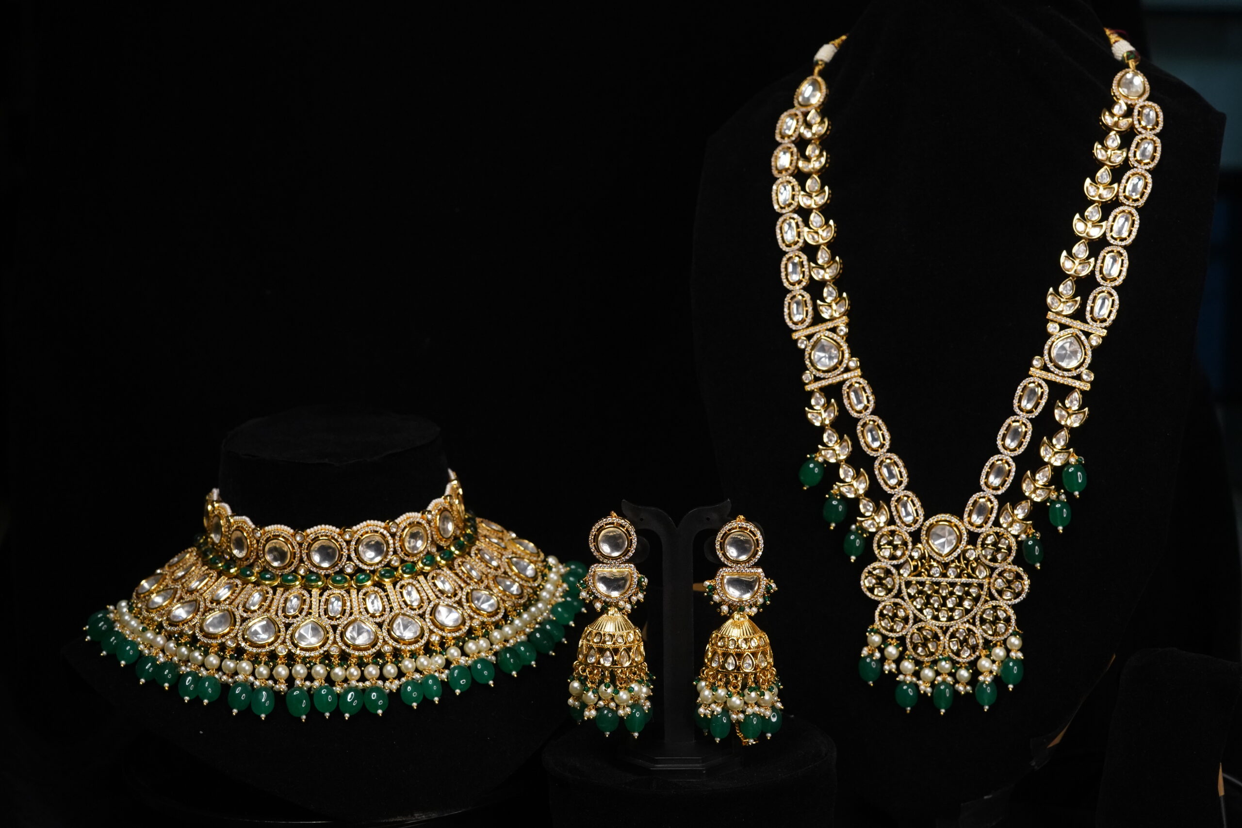 Kundan jewelry is known for its timeless appeal, intricate detailing, and ability to complement any bridal attire. The gemstone-studded pieces with a traditional gold finish exude luxury and sophistication, making every bride feel like royalty. Whether paired with a lehenga, saree, or a contemporary bridal gown, Kundan pieces offer versatility and elegance that no bride should miss.